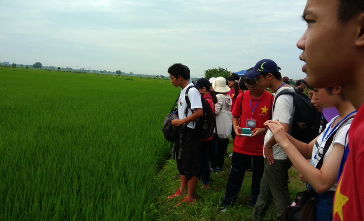 Cùng học sinh trường THPT Omyia Myiazaki, Nhật bản tại buổi thực tế nghiên cứu về trồng lúa sạch tại làng Đồng Phú